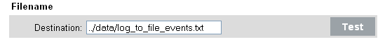 Under , specify the path to the file to which you want the events to be written, either an absolute path or a relative path (where the working directory is data under the application’s home directory). If desired, click to test permissions and create a zero-byte file to hold the data.