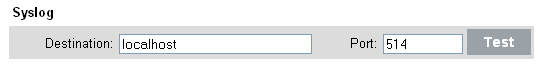 Under , specify a name or IP address and open UDP port of a syslog server. If desired, click to test that the destination server and port are formatted correctly.