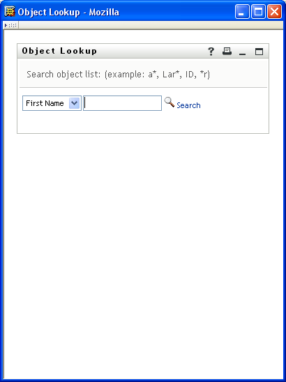 Determines whether the Object Selector dialog box performs an Object Lookup or a Container Lookup. This is an example of an Object Lookup: