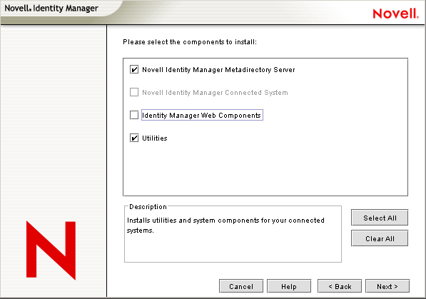 Novell eDirectory must be installed before you can install this option. Install the Metadirectory Server component where you want to run the Metadirectory engine for Identity Manager.