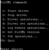 The interactive mode provides a text interface to control and use the DirXML Command Line utility.