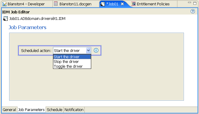 Figure 7-3 The Job Parameter Page for a Schedule Driver Job