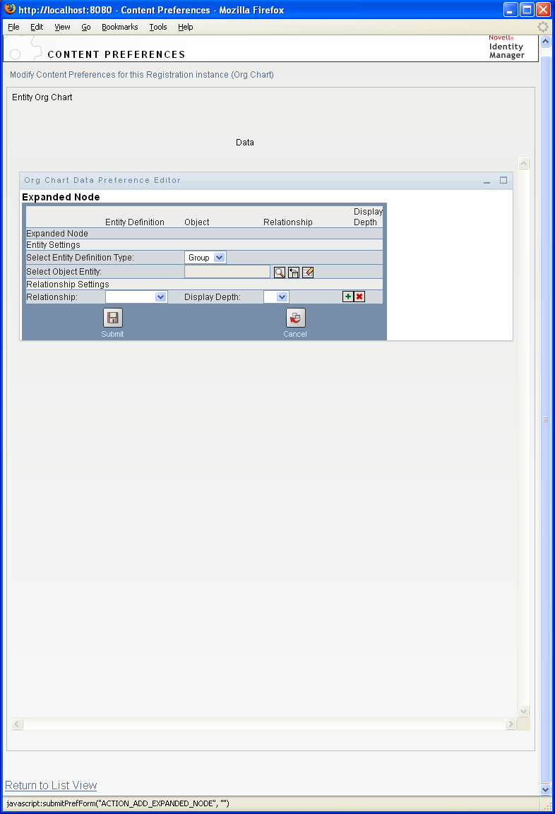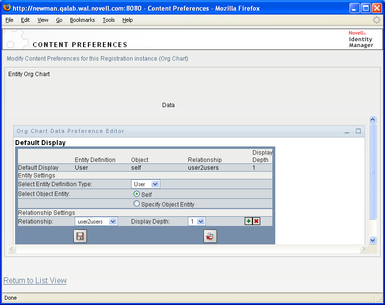 You can use one of the predefined relationships that are installed with the Identity Manager User Application, or you can create your own. For more information about defining a relationship, see Section 1.2.2, Directory Abstraction Layer. |