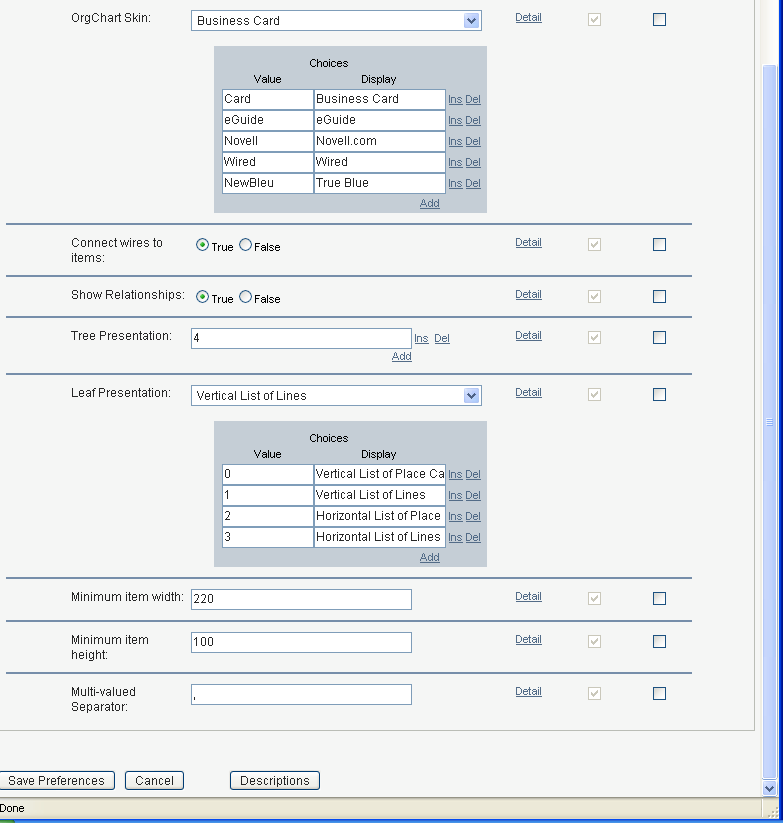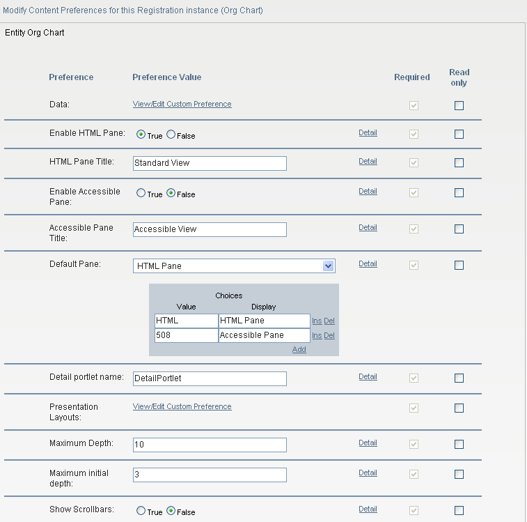 Table 13-3 Org Chart Portlet: Preferences