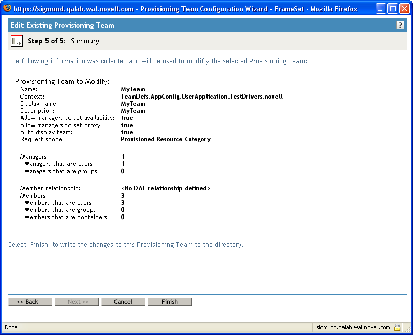 When you click on a team requests object, iManager asks you commit your setting. If you click to commit this setting, the user interface takes you directly to the Provisioning Team Requests plug-in to allow you to make changes to the team requests object.