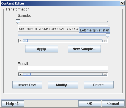 You use the Content editor to change the format and content of the input element to match that required by the output element. Using the Content Editor, you can slice the input data into small parts, move the parts to different locations relative to one another, add new parts, omit some parts, and apply functions to individual parts.