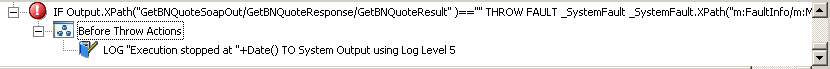 Throw Fault is only executed when a condition that you specify is true. The message part that is written when a Throw Fault action is executed is called a Fault document, and the XML within this message is contained in a global object called ERROR.