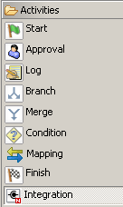 Drag an Integration activity from the palette and place it in the desired location in the workflow.