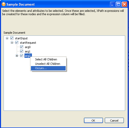 Expand the nodes of the sample document and deselect any attributes that you want to remove.