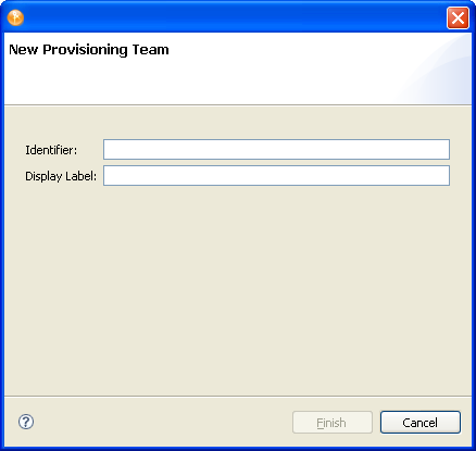 Launch the New Teams Wizard from the Provisioning view by right-clicking the Teams node, then selecting . The New Provisioning Teams dialog box displays.