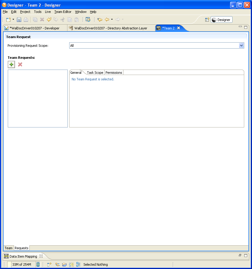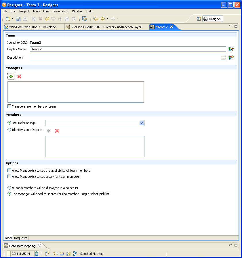 You must deploy the Provisioning Team for it to be available to the User Application. See Section 2.7, Deploying Provisioning Objects. A deploy of a provisioning team creates two objects in the User Application driver Appconfig Teams node: