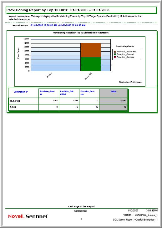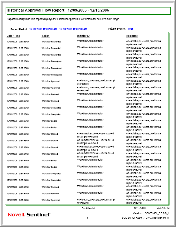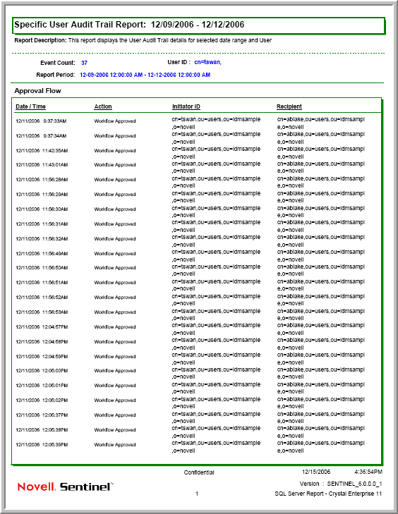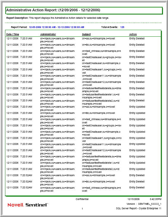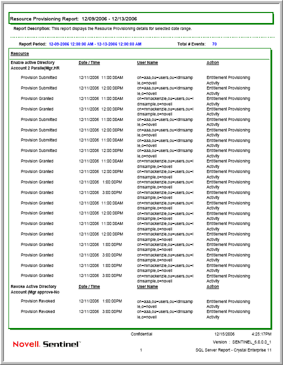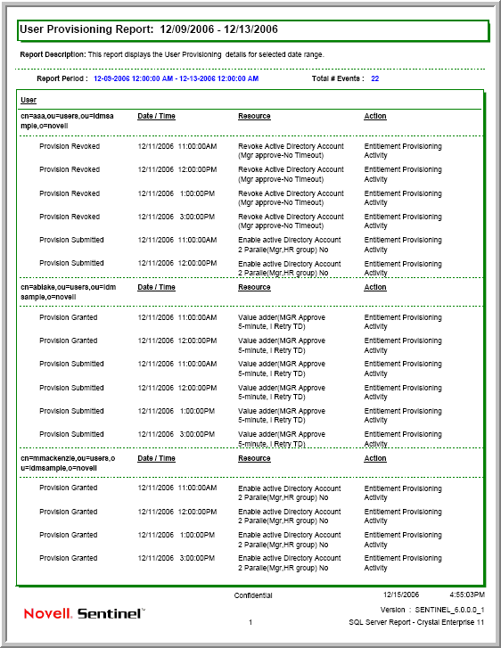 This section provides examples of the following Novell Sentinel reports for Identity Manager and the events associated with each report: