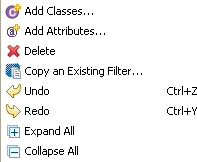The Filter editor allows you to create and edit the filter. To display a context menu, right-click an item.