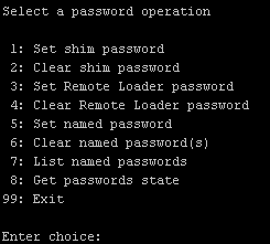 Nine Password options are available. See Table A-3 for a description of these options. |