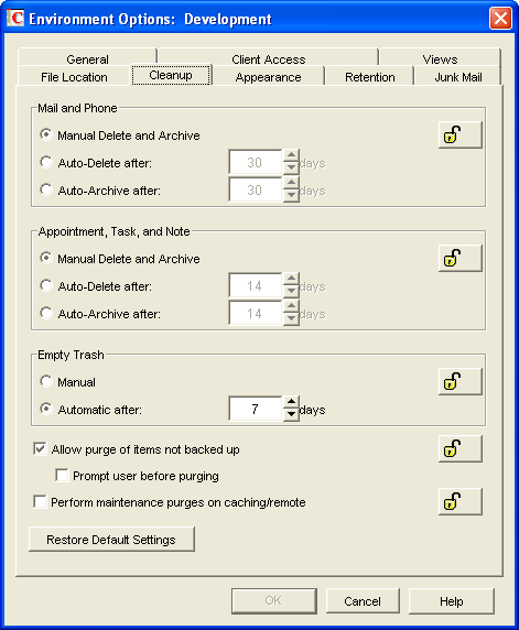 You can also use the options to help control the use of disk space by users. The options and the options use the DiscardSettings attribute. For more information, see Section 6.4.7, Environment > Cleanup.