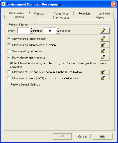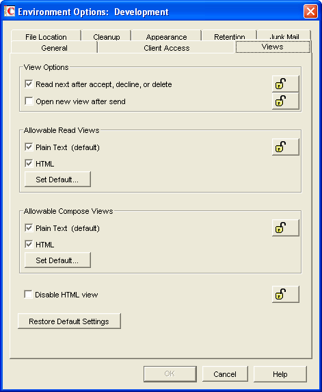 The Environment options determine when items open, and whether or not users can read and compose messages in HTML.