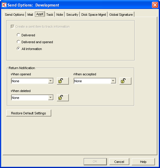 Notify and Mail: Set the value to 3 for the user to receive notification through GroupWise Notify and a mail message when the recipient accepts the note.