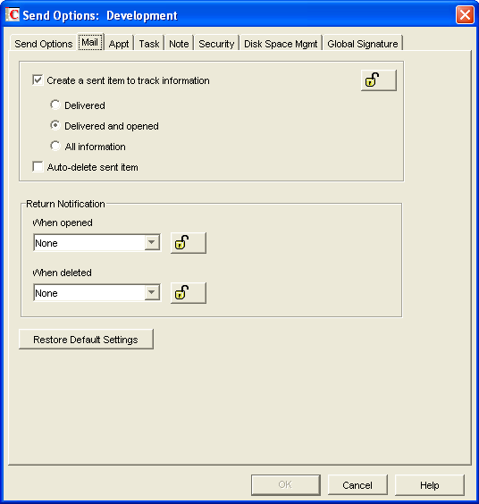Mail Receipt: Set the value to 1 for the user to receive a mail message stating that the recipient opened the note.