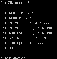 The interactive mode provides a text interface to control and use the DirXML Command Line utility.
