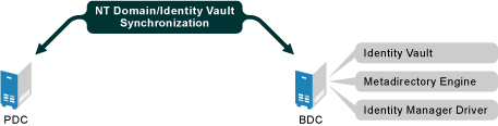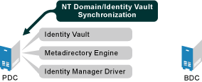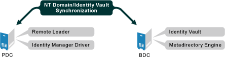 As shown in Figure 2-2, Installation Configuration: All Components on the PDC, you can install the Identity Vault, the Metadirectory engine, and the NT Domain driver on the PDC.
