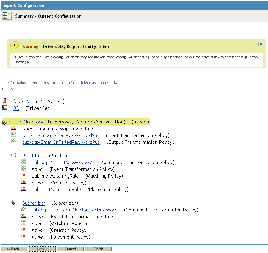 At this point, the driver is created from the basic configuration file. To ensure that the driver works the way you want it to for your environment, you must review and modify (if necessary) the driver’s default configuration settings.
