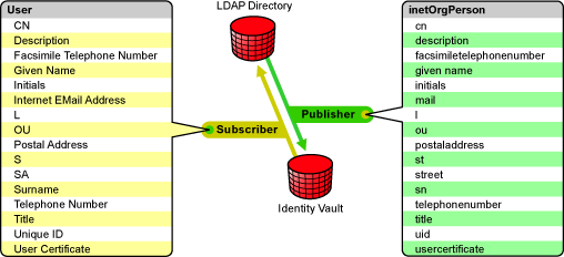 The Subscriber channel watches for additions and modifications to Identity Vault objects and issues LDAP commands that make changes to the LDAP directory.