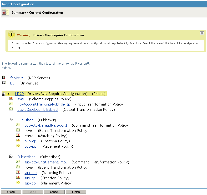 At this point, the driver is created from the basic configuration file. To ensure that the driver works the way you want it to for your environment, you must review and modify (if necessary) the driver’s default configuration settings.