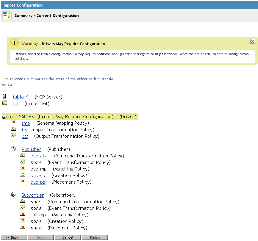 At this point, the driver is created from the basic configuration file. To ensure that the driver works the way you want it to for your environment, you must review and modify the driver’s default configuration settings.