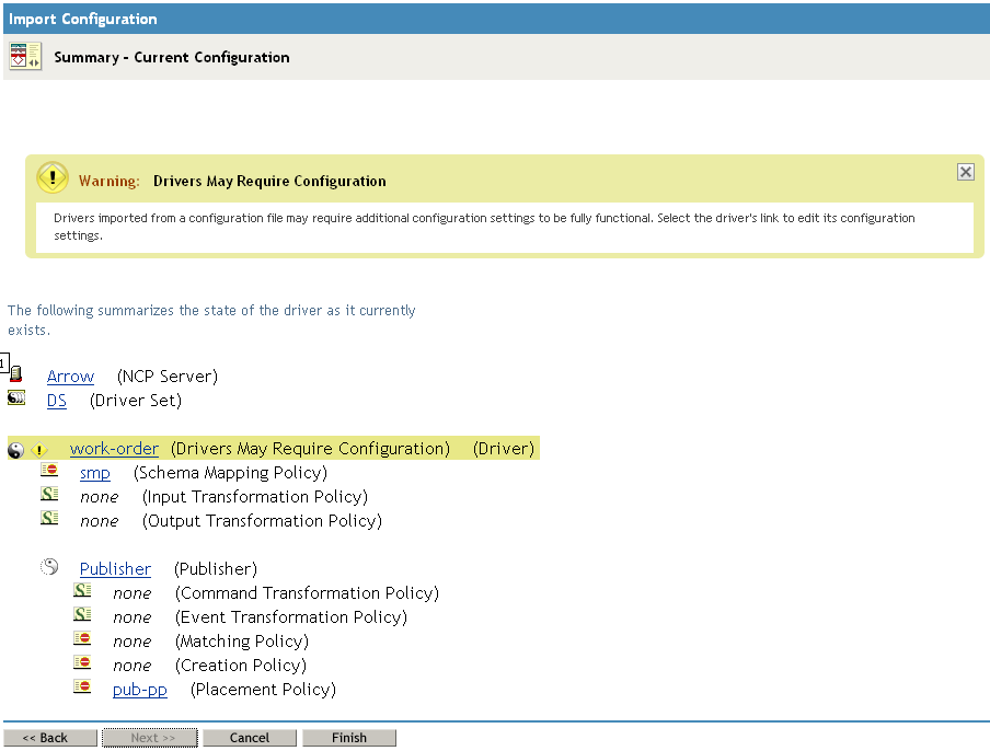 WARNING:Do not click on the Summary page. This removes the driver from the Identity Vault and loses your work.
