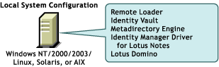 A local installation installs the driver on the same computer where you have installed the Lotus Domino server, the Identity Vault, and Identity Manager.