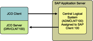 In this configuration, the driver acts as an administrative client to perform User administration, such as User account creation, password set, and role administration, etc., in the CUA Central logical system ADMCLNT100. The Central system is configured to distribute the User account information to the CUA Child logical system DRVCLNT100 that represents the driver. As can be seen from the diagram, the driver acts as both a SAP Client and a Server to obtain full bidirectional synchronization functionality.