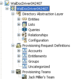When it is open, the Provisioning view displays all of the provisioning projects located in the same workspace. The contents of the view depend on what version of the User Application driver you selected when you created the project, and whether you included a Role Service driver.