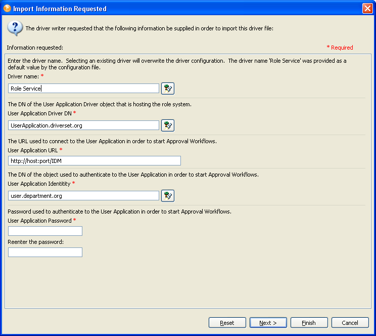 To use Designer to configure the Roles tab of the User Application, you must additionally add a Role Service driver to your project. See Section 2.1.2, Adding a Role Service Driver after completing Creating a User Application Driver.