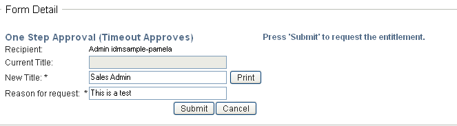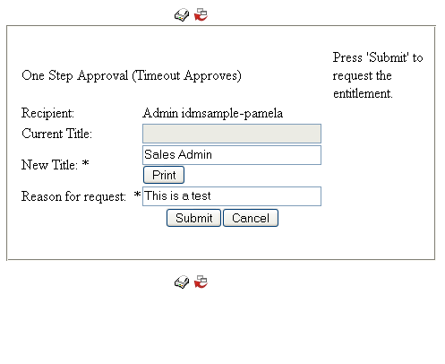 You can add a button to a request or approval form using JavaScript. To add the ability to print a form, add the URL to the JavaScript library PrintForm.js. The library is located in the User Application WAR at this URL: ./javascript/JUICE/form/PrintForm.js. You can optionally do the following: