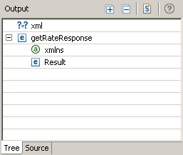 The Output view displays the output message derived from the WSDL document for the Web service. When you execute the action model, you use the Output view to view the values returned from the Web service.