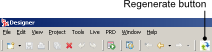 When working in the WSDL Editor view, you can regenerate all code for the action model and regenerate messages by clicking the button. When working in the Messages view, you can regenerate all actions in the action model. The button is located in the Designer toolbar: