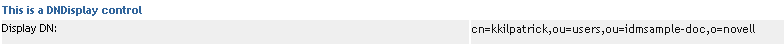 Use this control to display a read-only DN. You populate the control from flowdata. The control can display the full DN or a set of attributes associated with the DN depending on the properties you set.
