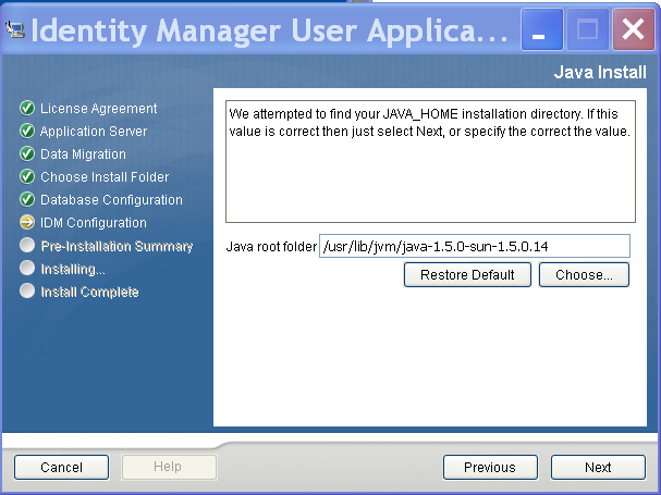 Click Choose to browse for your Java root folder. To use the default location, click Restore Default.