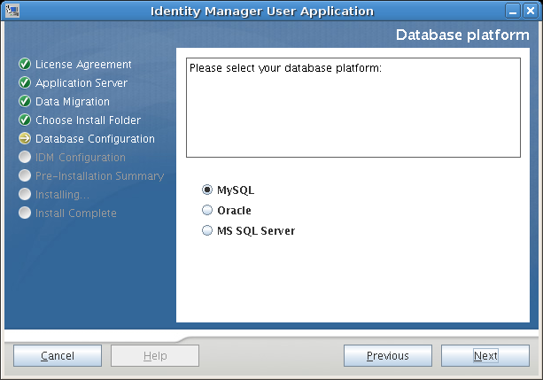 Click Next, then continue with Section 4.7, Specifying the Database Host and Port.