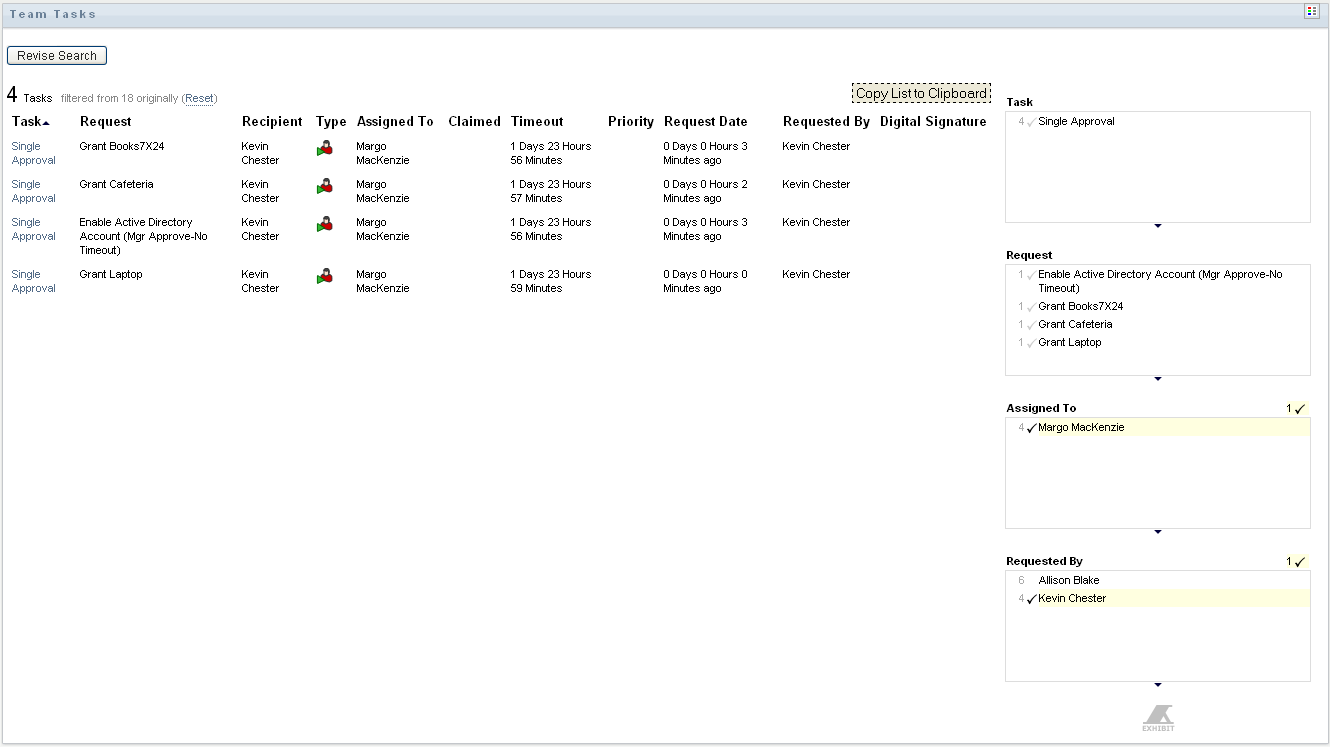 Figure 12-2 Example of Task List in Exhibit Display Format