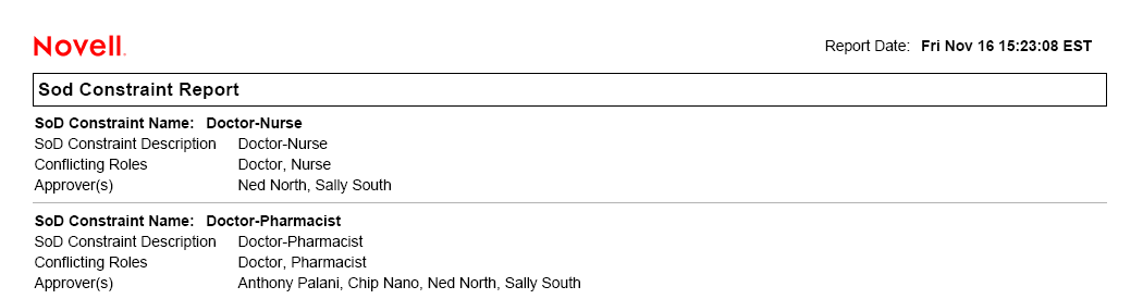 Figure 18-3 Sample SoD Constraint Report