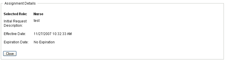 To see the details for a particular role assignment, click the assignment name in the column and scroll down until you see the Assignment Details group box.