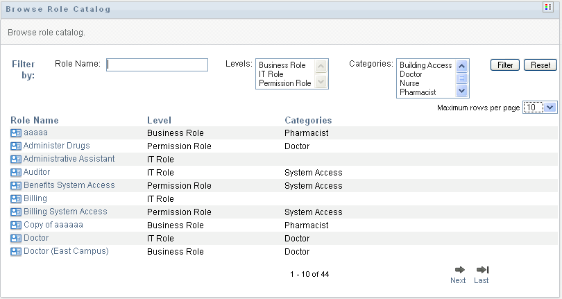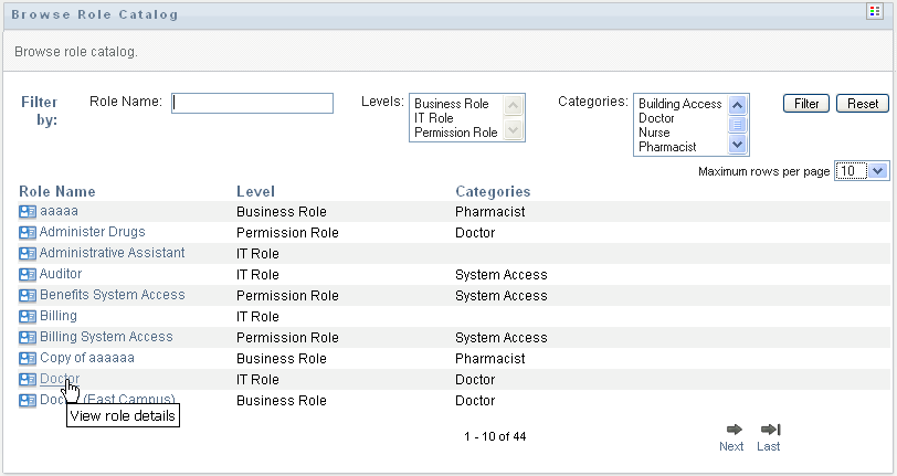 To view those roles that have a specific level in the hierarchy, select the desired level in the box.