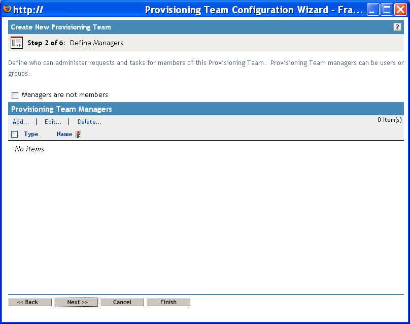 Specify the managers for the team, as described in Specifying the Team Managers.