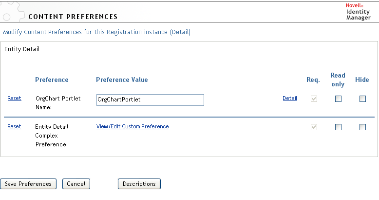 The Detail portlet has two preference pages: one for general preferences (shown in Figure 12-8) and one for complex preferences.