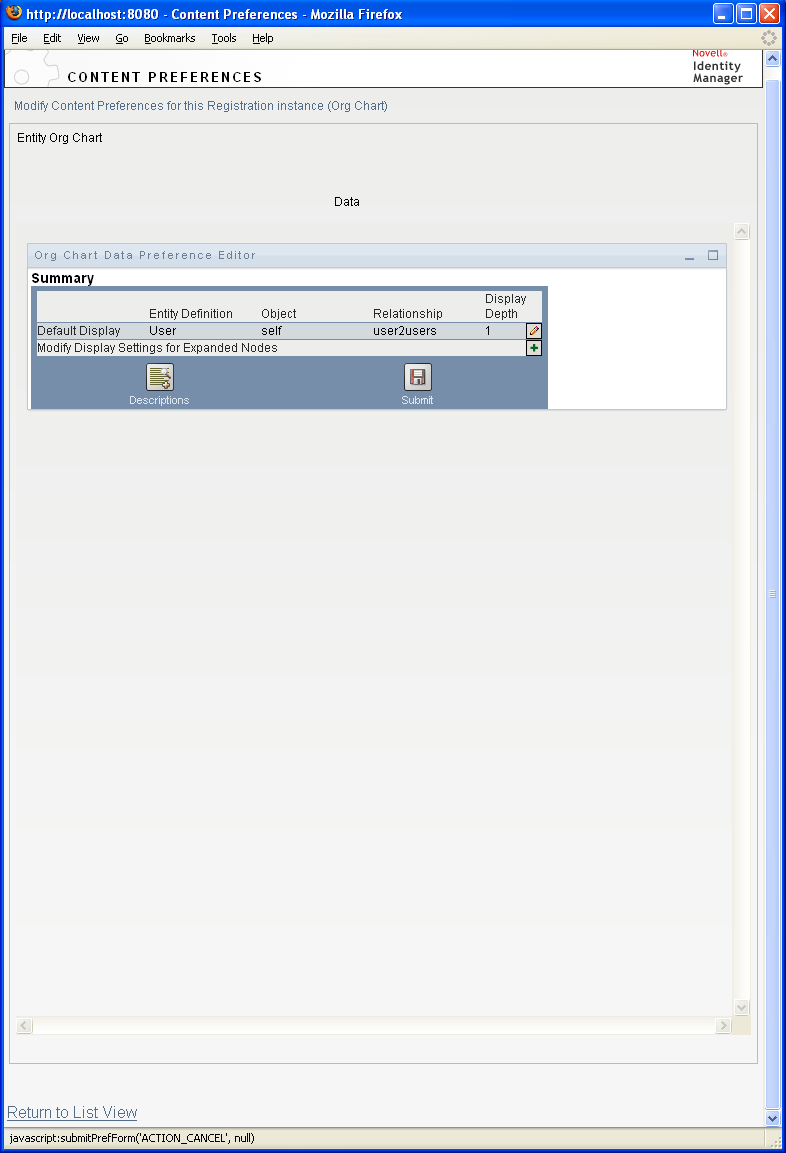 Table 13-3 Org Chart Portlet: Preferences