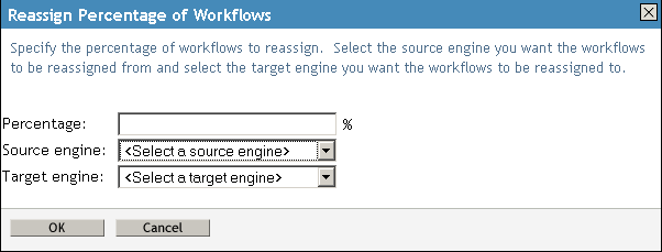 In the field, type the percentage of workflow processes that you would like to reassign from one workflow engine to another.