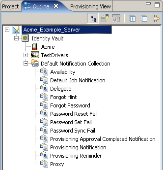 The Provisioning view is only available for Designer projects that contain a User Application driver. After you set up an Identity Manager project (see “Creating a Project” in the Designer for Identity Manager 3.5: Administration Guide) and configure an Identity Vault and driver set for the project, you add and configure a User Application driver.