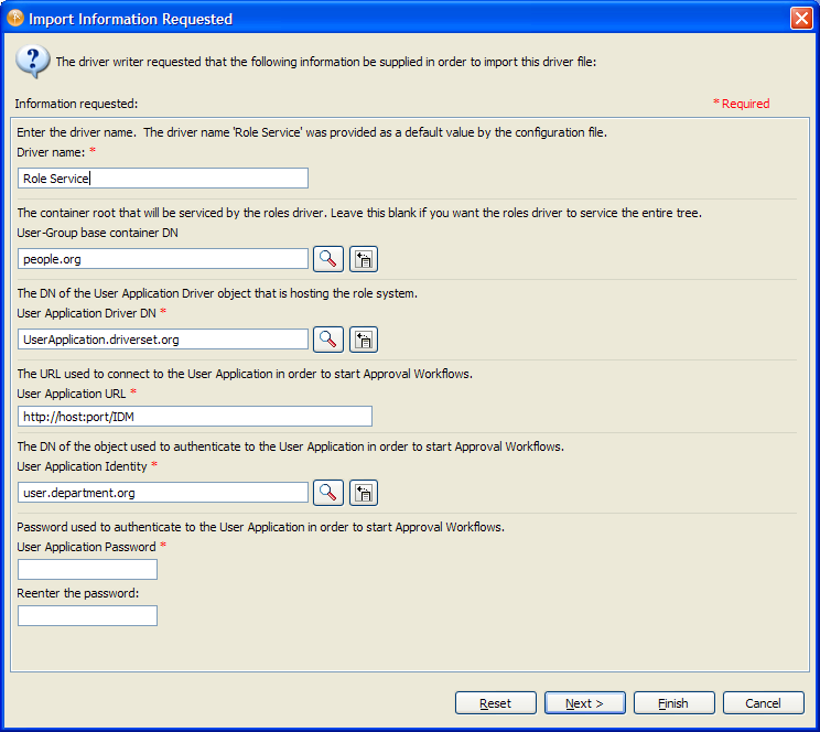To use Designer to configure the tab of the User Application, you must additionally add a Role Service driver to your project. See Section 2.1.2, Adding a Role Service Driver after completing Creating a User Application Driver.