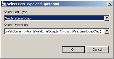 A dialog box that you use to select a port type and operation for the Web service is displayed.